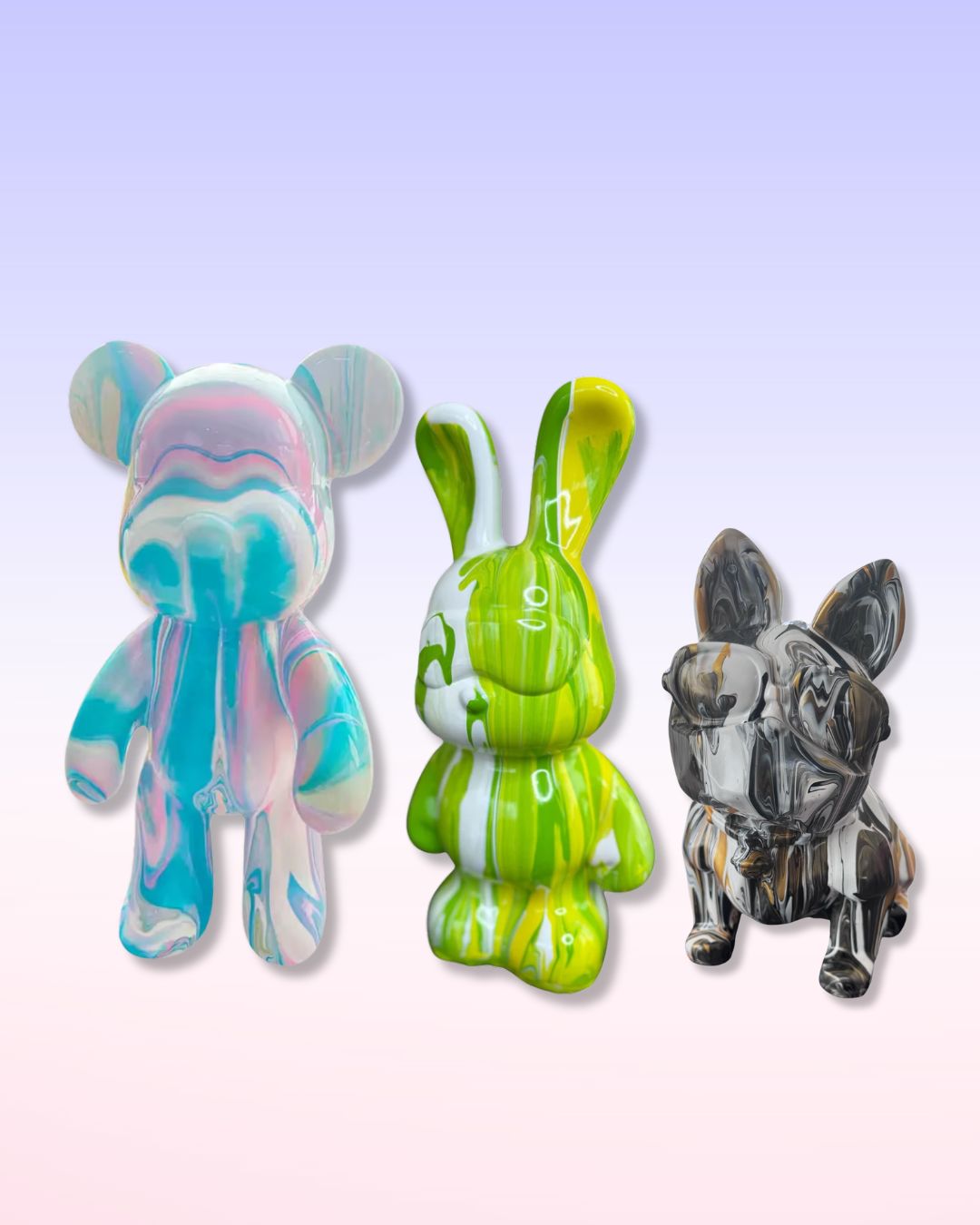 With pouring art , painting becomes child's play. Simply layer the colors in a cup, tip it over the figurine... and let the magic happen! The paints mix as they flow, creating mesmerizing marbled effects .