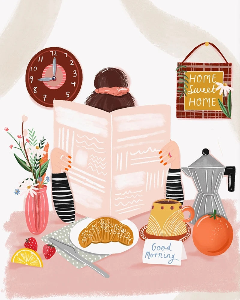 Commencez la journée avec douceur grâce à Petit Déj' Douillet, notre peinture par numéros représentant une scène matinale pleine de charme : une femme savourant son petit-déjeuner, croissant, café, fruits et lecture du journal, le tout dans une ambiance cocooning "Home Sweet Home".