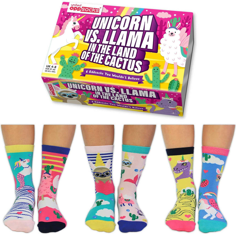 UNITED ODDSOCKS - LICORNE CONTRE LAMA AU PAYS DU CACTUS - COFFRET ADULTE DE 6 ODD SOCKS EUR 37-42